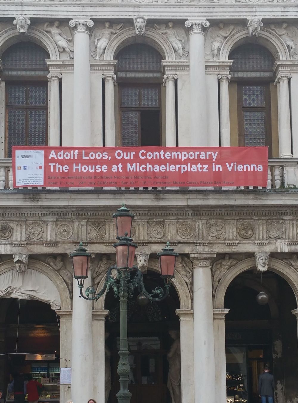 La mostra intitolata «Adolf Loos Our Contemporary», si tiene nelle Sale monumentali della Biblioteca nazionale Marciana alle quali si accede dal Museo Correr in piazza San Marco. La mostra ha il patrocinio dell’Università Iuav di Venezia e della Columbia University di New York ed è organizzata in concomitanza con la Biennale di Architettura 2016.