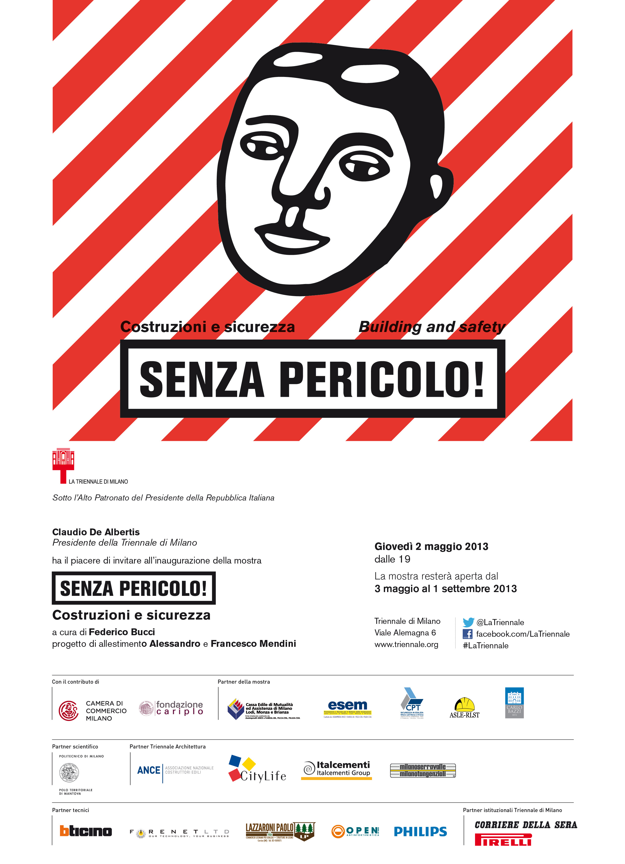Il percorso della mostra «Senza Pericolo!» è svolto attraverso una serie di approfondimenti dedicati alle relazioni tra il mondo delle costruzioni e i problemi della sicurezza. Dagli oggetti usati per proteggere il corpo nelle attività produttive, alla casa come condizione primaria della sicurezza sociale; dagli spazi del lavoro (a partire dal cantiere), agli impianti che, sottoterra e dentro i muri, garantiscono il funzionamento dei servizi tecnici; dalle innumerevoli volte in cui l’umanità si è trovata a ricostruire la propria storia dopo aver subito una distruzione (non solo, ovviamente, per le catastrofi naturali), alle condizioni di un’architettura che oggi, sempre più sorvegliata da telecamere, non distingue i confini tra safety e security. Questi sono i percorsi di ricerca proposti, articolati in 9 sezioni e guidati da una versione positiva del termine sicurezza, con l’obiettivo «d’interpretare il passato per progettare il futuro su una Terra che dev’essere curata molto bene per viverci senza preoccupazioni».