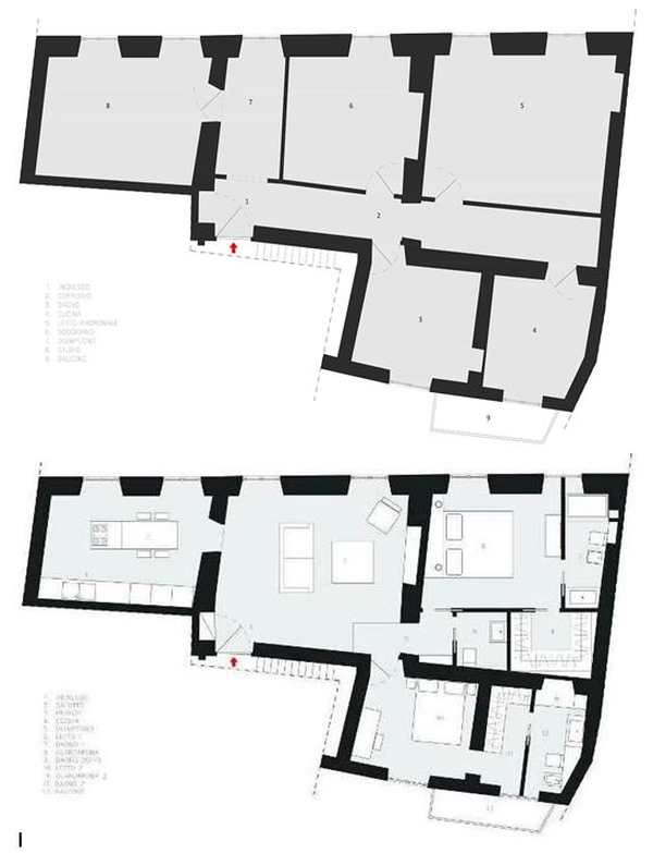 «Per il recupero architettonico di questo appartamento mi sono posta l’obiettivo di mantenere vivo il fascino antico della struttura in legno dei soffitti, della pietra delle murature portanti e, soprattutto riportare, alla luce gli affreschi ritrovati durante le lavorazioni di pulizia delle vecchie vernici delle pareti». Serena Romanò, architetto