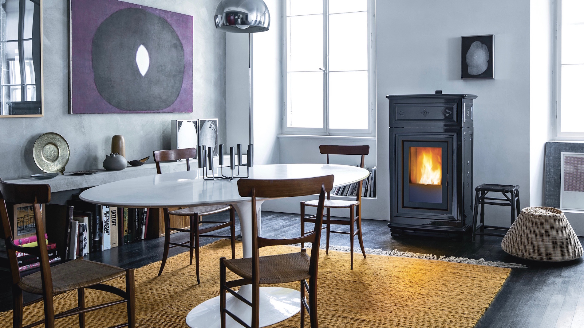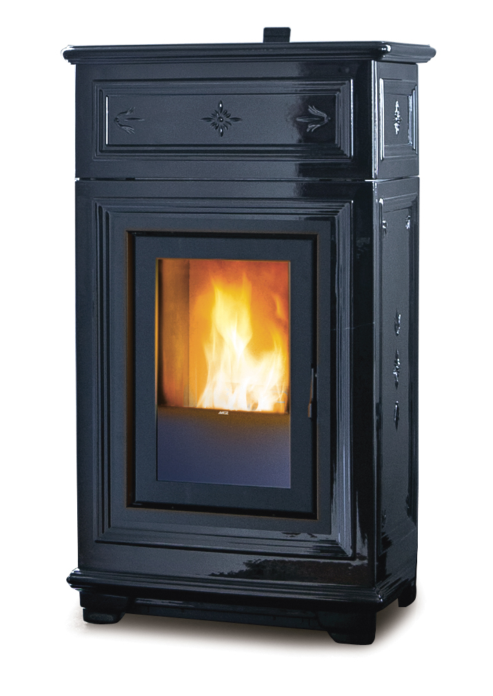 La stufa Sissy Pellet di Sergio Leoni è disponibile in due versioni, idro e canalizzabile.