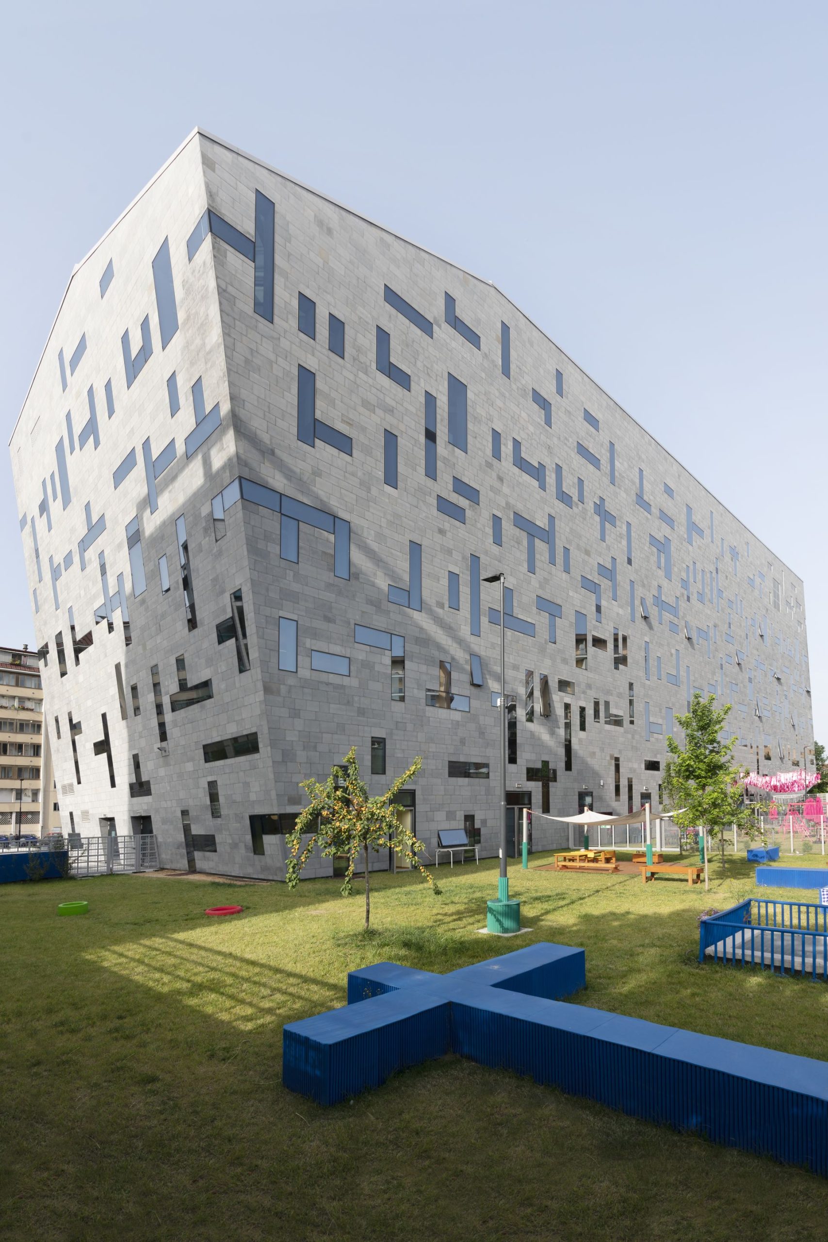 Un volume monolitico caratterizzato da un grande sbalzo inclinato, che evoca l’immagine di un’arca, simbolo di salvezza e rimando ai concetti di solidità e sicurezza. Si presenta così l’headquarters di Gruppo CAP, gestore del servizio idrico della Città Metropolitana di Milano. Un’unica struttura su 6 piani, più di 11mila mq di superficie, che comprende gli uffici per gli oltre 400 dipendenti e spazi “pubblici”, accessibili dalla cittadinanza, come la caffetteria, laboratori, un’esposizione museale, un auditorium, etc.