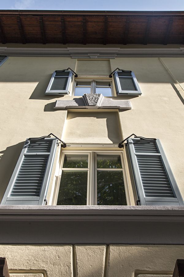 Per rispettare i vincoli imposti sono state mantenute le persiane esterne, che sono state sostituite con 32 nuove persiane in legno con soluzioni Italserramenti a profilo Storico e con apertura motorizzata con bracci e motorizzazione incassata nella veletta (automazione modello S/A di Ancelotti).