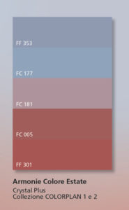 Coordinato da Leonardo Pelagatti, il Color Design Center ha proposto una selezione di cinque differenti colori tratti dalle collezioni colore Settef ColorPlan 1 e ColorPlan 2, abbinati tra loro per richiamare il tema dell’acqua e dei toni caldi dei tramonti estivi.