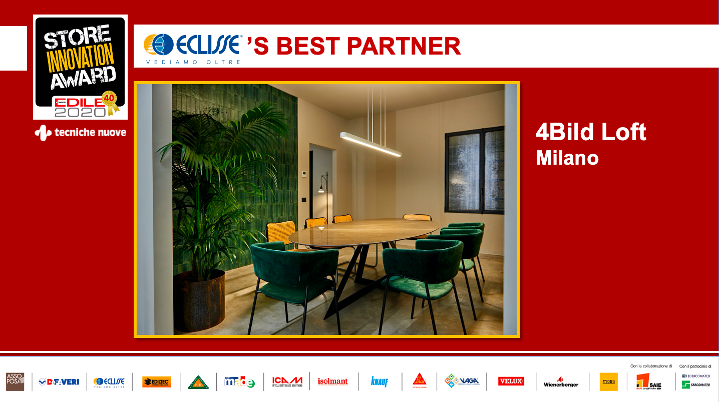 Specializzata nella produzione di controtelai per porte scorrevoli a scomparsa Eclisse per la quinta edizione di Store Innovation Award, ha scelto come suo Best Partner 2020 4Bild Loft di Milano.