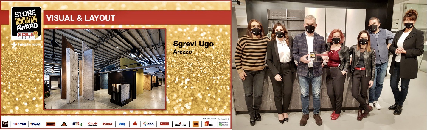 I vincitori per la categoria Visual & layout di Store Innovation Award sono ex aequo: 4Bild Loft di Milano, Eternedile Aqva Ceramiche di Poggibonsi (Si) e Sgrevi Ugo di Arezzo.