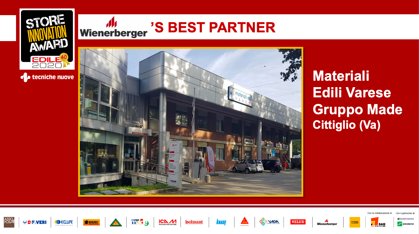 Wienerberger Italia, che offre una vasta gamma di soluzioni, dove la tradizione del laterizio si sposa con la tecnologia e l’innovazione per mantenere la gamma in costante evoluzione e soddisfare qualsiasi esigenza costruttiva ha scelto come suo Best Partner 2020 per la quinta edizione di Store Innovation Award, il punto vendita Materiali Edili Varese Gruppo Made di Cittiglio (Va).