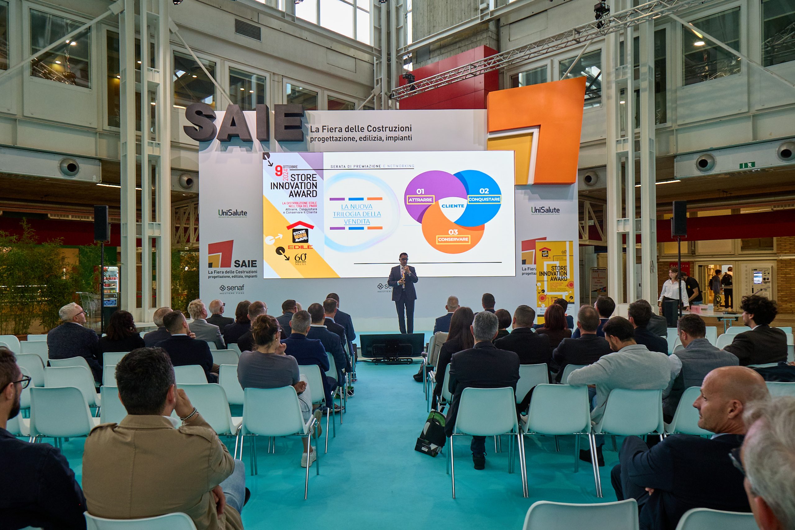 La distribuzione edile nell’era del Pnrr: da distributore di prodotti a hub di conoscenza con la nuova trilogia della vendita: Attrarre, Conquistare, Conservare è il tema affrontato da Achille Carcagnì alla nona edizione di Store Innovation Award, che ha avuto luogo a Bologna il 9 ottobre 2024.
