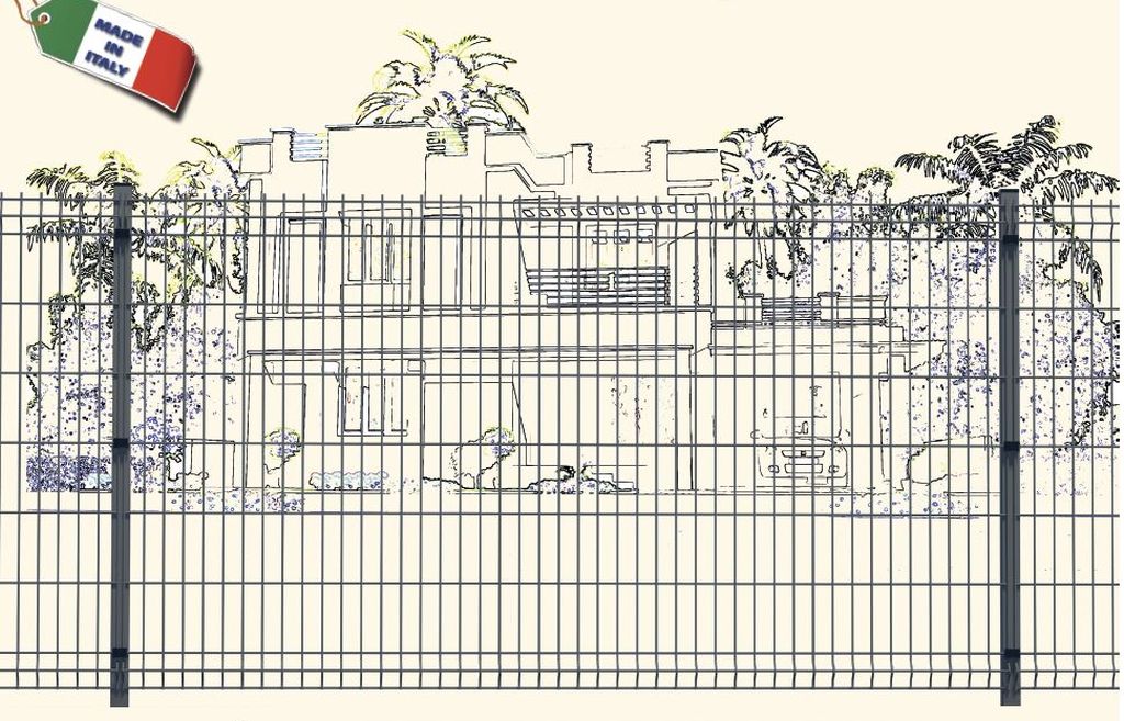 Medium Antracite è una recinzione modulare in pannelli di filo zincato elettrosaldato e plastificato con poliestere. prodotta da Siderurgica Ferro Bulloni. Il diametro esterno del filo è di mm 5 e la maglia da mm 50×200 H (interno) con nervature orizzontali di rinforzo.