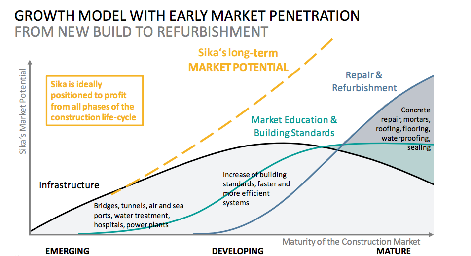 È nei settori del calcestruzzo, dell’impermeabilizzazione, delle coperture, delle pavimentazioni, degli adesivi ne sigillanti, della ristrutturazione e dell’industria che Sika vede una crescita potenziale nei prossimi tre anni.