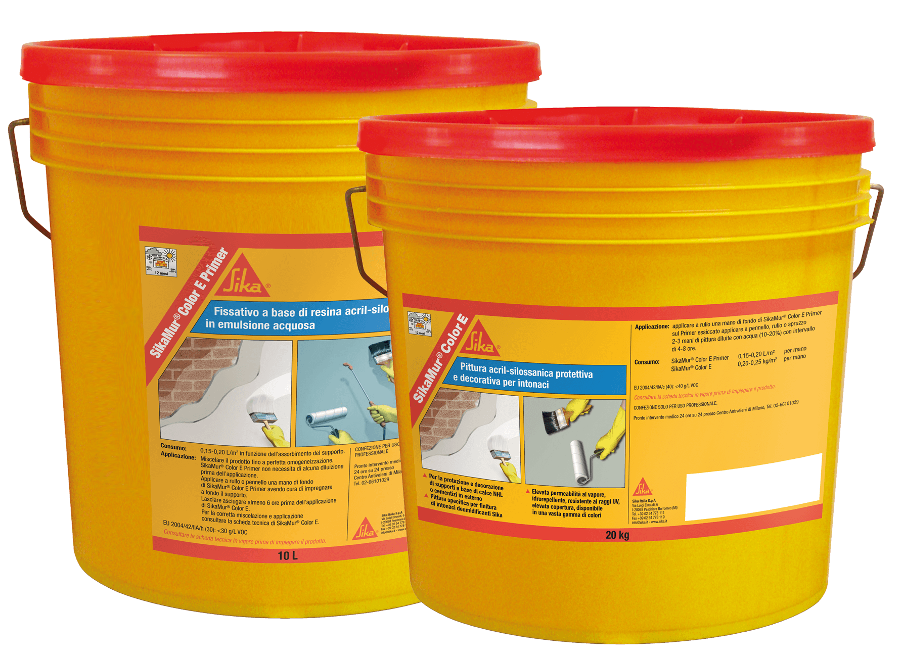 SikaMur® Color E, una idropittura monocomponente contenente minerali e resina silossanica particolarmente indicato quale verniciatura decorativa e protettiva di intonaci deumidificanti o di intonaci esistenti a base calce e cemento-calce e di supporti in c.a. garantendo un valido effetto estetico, un ottimo effetto idrorepellente ed una eccezionale permeabilità al vapore.