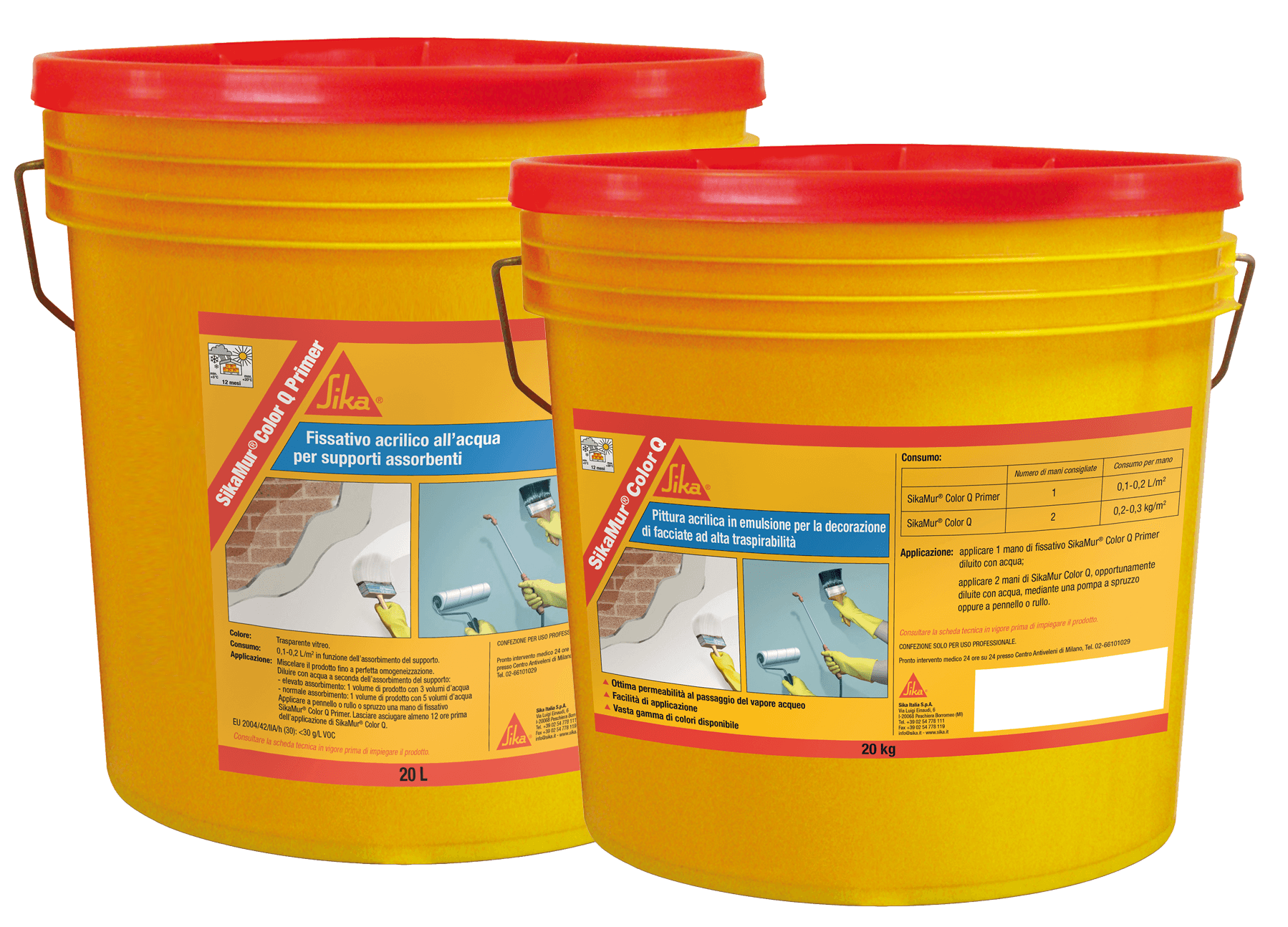 SikaMur® Color Q, una pittura colorata a base di resine acriliche in dispersione d’acqua e cariche minerali micronizzate per la decorazione di facciate in calcestruzzo, intonaco e supporti minerali in genere. È indicata quale verniciatura decorativa di intonaci tradizionali e sottofondi in cls che non necessitano di particolari requisiti protettivi.