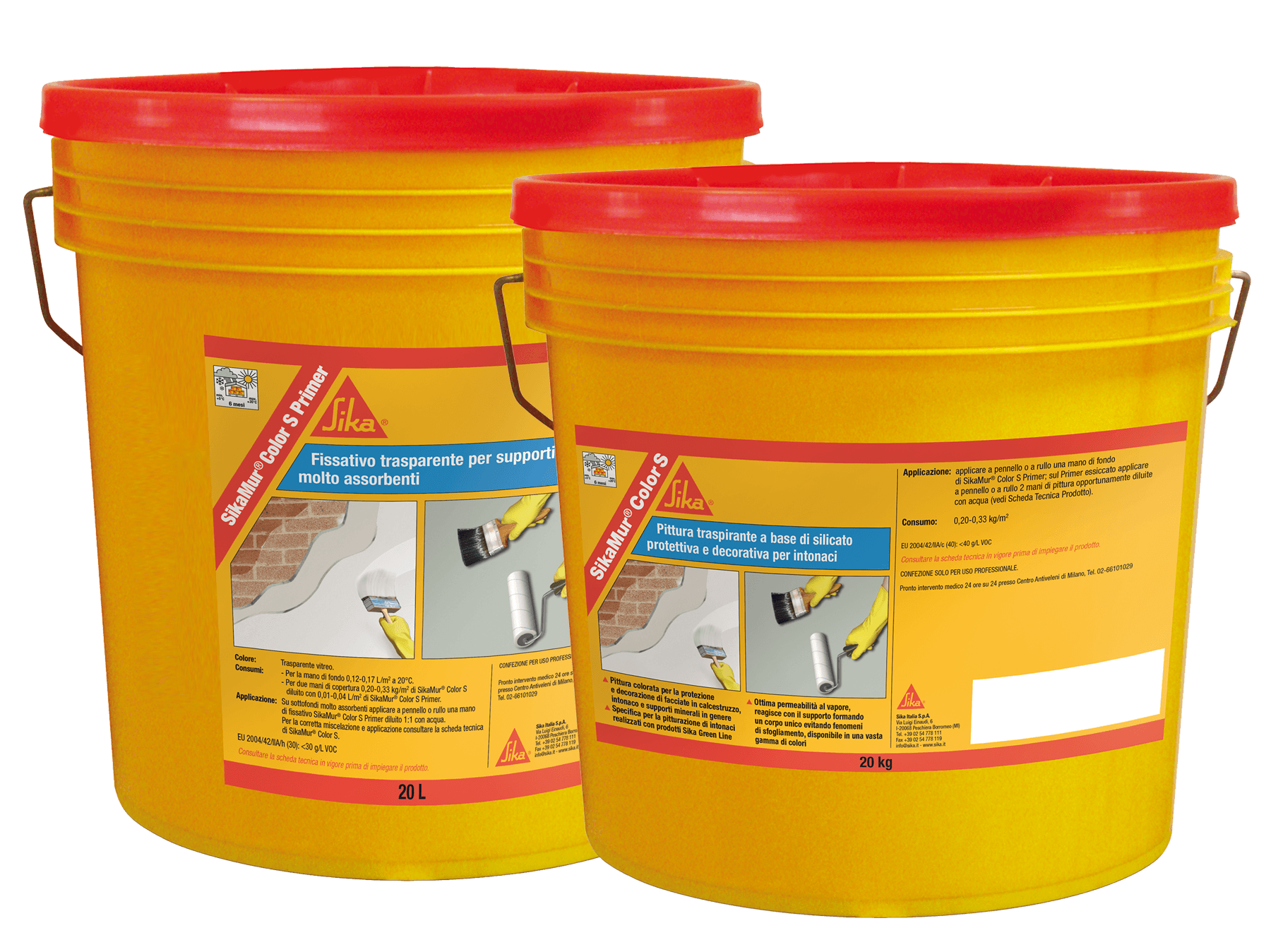 Sikamur® Color S, una pittura colorata, ad alta traspirabilità, a base di silicato per la decorazione e la protezione di facciate in intonaco e supporti minerali in genere. È indicata per la pitturazione di intonaci a base calce, cementizia o intonaci deumidificanti e gode di ottima permeabilità al passaggio del vapore acqueo. Facile da applicare, è disponibile in una vasta gamma di colori.