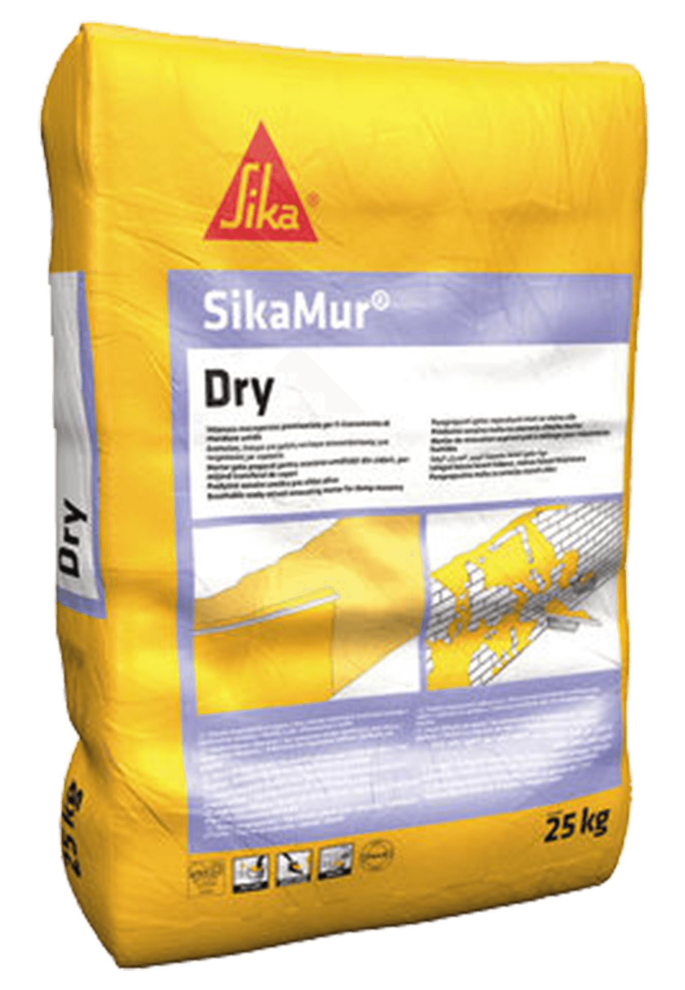 Applicazione di SikaMur® Dry in due strati. SikaMur® Dry è un intonaco monocomponente ad alta traspirabilità per la deumidificazione e il risanamento di murature, in classe R secondo la EN 998-1. SikaMur® Dry contiene speciali agenti porogeni, inerti e leganti selezionati, idoneo per il trattamento ed il risanamento di murature soggette all’umidità di risalita. SikaMur® Dry è studiato per l’applicazione a mano. Applicabile sia in interno che in esterno sui seguenti substrati: Murature in mattoni pieni; Murature in pietrame o miste; Murature in blocchi squadrati; Murature in blocchi di tufo non sfarinanti.
