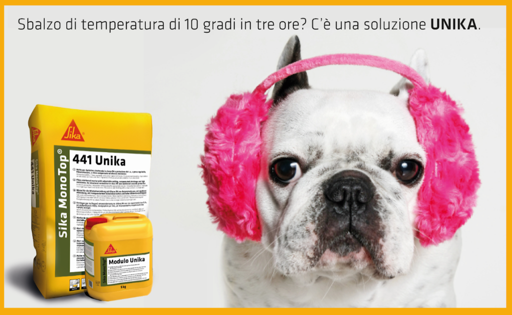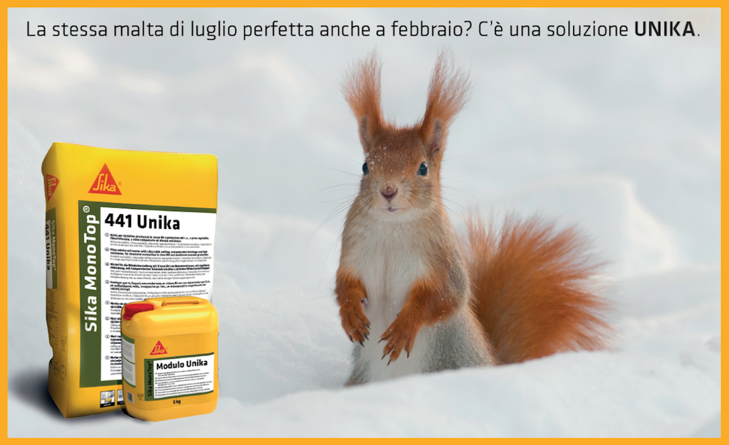 «È un prodotto semplice, facile da applicare, che dà al posatore totale indipendenza nella preparazione del prodotto in funzione della stagione, delle temperature, della tipologia di lavoro che dovrà realizzare, riducendo il numero dei prodotti da utilizzare e i costi di gestione. Sika Italia ha concentrato le attività di Marketing e Comunicazione su Sika MonoTop-441 Unika, con la convinzione di poter creare nuove opportunità per i propri Clienti, in un settore – quello del Ripristino del Calcestruzzo – ancora con margini di crescita significativi». Così Giorgio D’Alò, Distribution channel Manager, Target Market Manager Refurbishment di Sika Italia spiega le caratteristiche salienti del prodotto su cui l’azienda sta puntando.