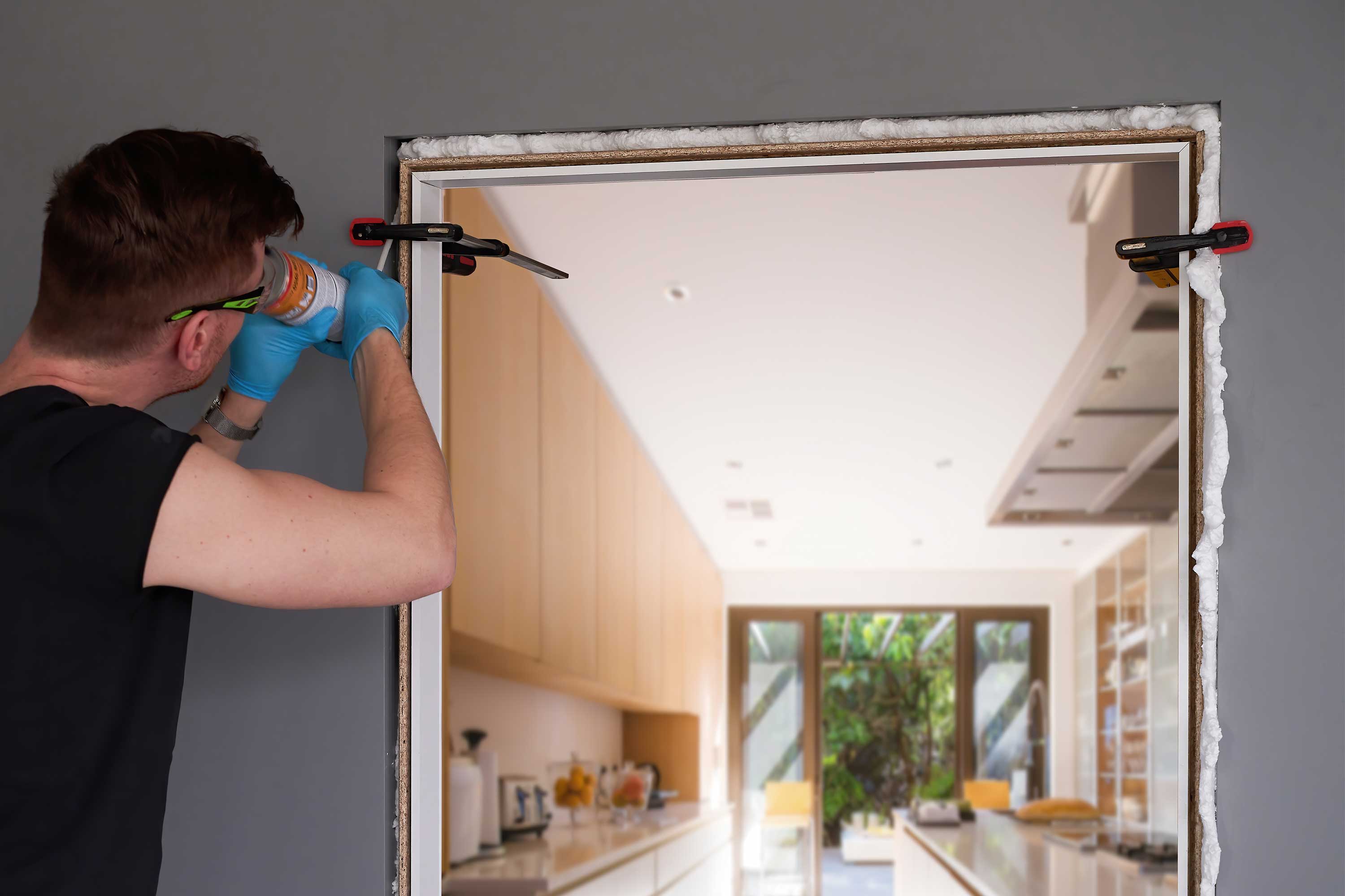 • Riempimenti giunti intorno a telai di porte e finestre