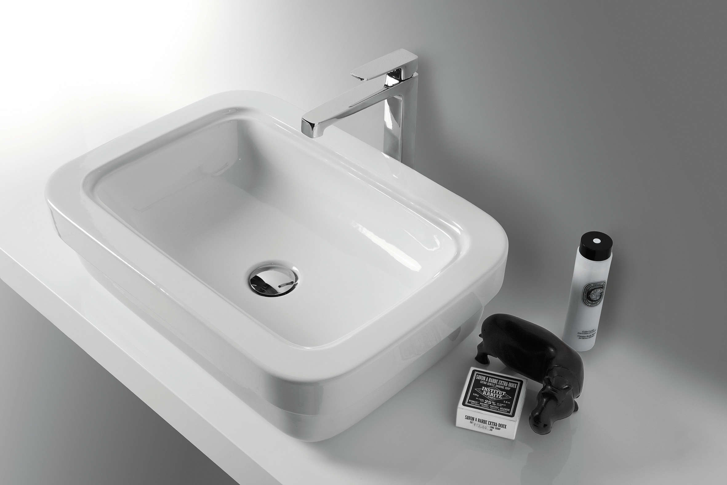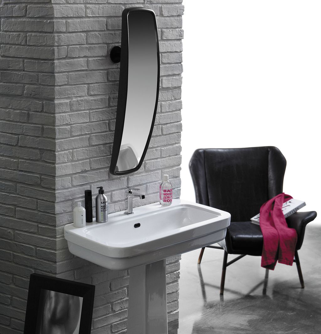 Con rimandi a stili storici come l’Art Déco o lo Streamlining (tendenza del design statunitense degli anni ’20), la collezione punta su una forma tipica nell’ambiente bagno dei nostri giorni: il quadrato arrotondato.