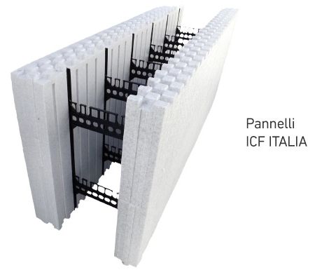 Il sistema costruttivo Icf Italia è composto da pannelli modulari in polistirene espanso sinterizzato ad elevata densità. I casseri assemblati fra loro consentono di realizzare pareti portanti in calcestruzzo armato o debolmente armato.