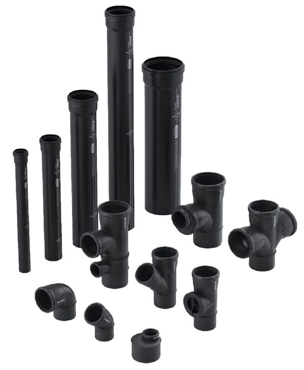 Le tubazioni Geberit Silent-PP garantiscono una minor propagazione dei rumori di scarico grazie all’ottimizzazione idraulica dei raccordi e alla costruzione a 3 strati di materiale minerale.