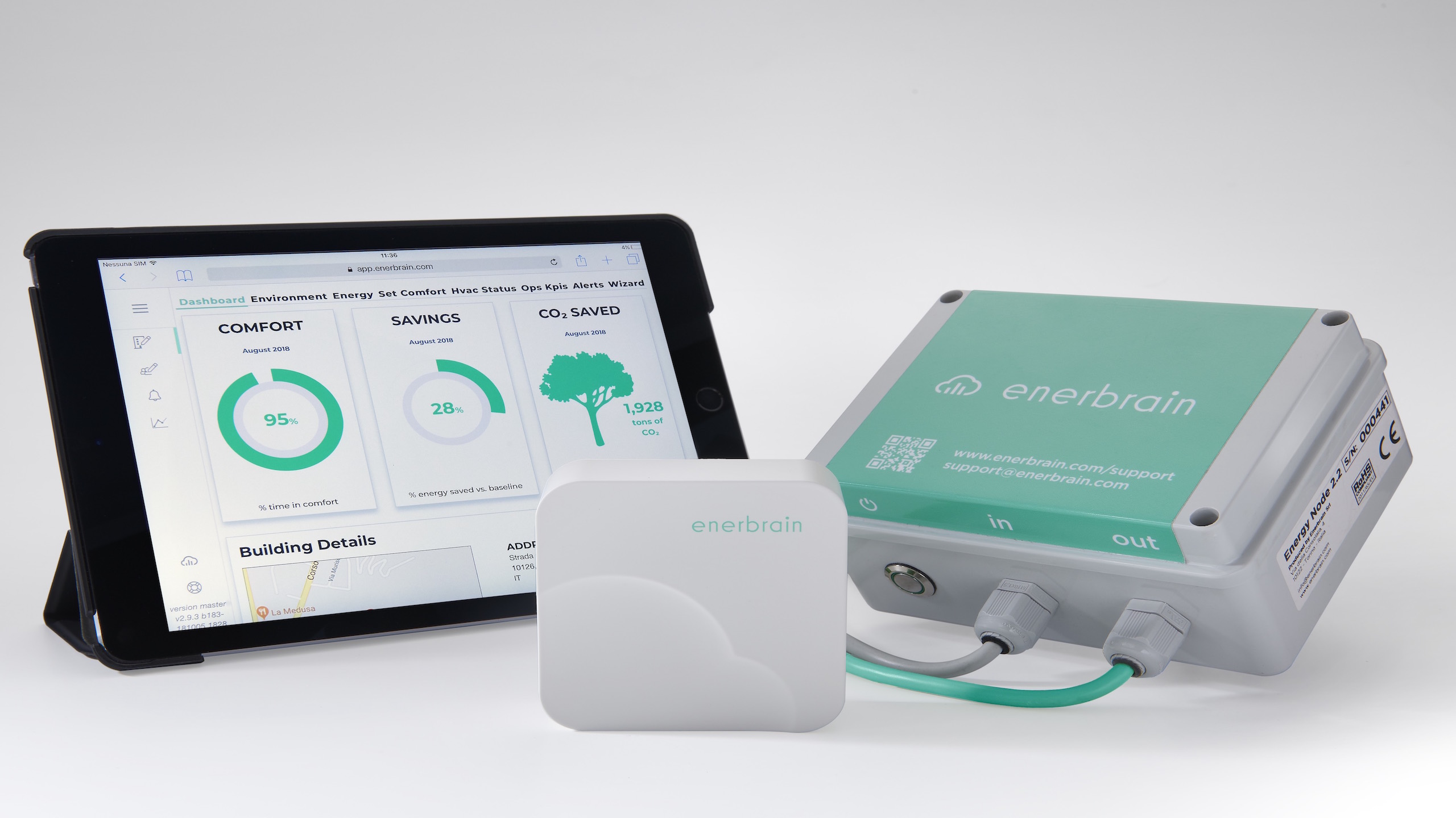 In pratica chi gestisce centri commerciali, aeroporti, ospedali o altri edifici che debbano ospitare e far fronte a flussi di pubblico può facilmente verificare i livelli di anidride carbonica in modo da intervenire ricambiando l’aria quando necessario. Il sistema Enerbrain si completa con centralina intelligente che dialoga con impianti di ventilazione, riscaldamento e raffrescamento già esistenti, ottimizzandone il funzionamento in tempo reale grazie a un algoritmo di machine learning.