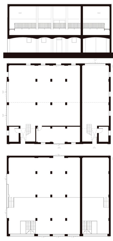 All’esterno la partitura dei prospetti si mantiene inalterata esaltando gli archi in laterizio faccia a vista, arretrando e intonacando le tamponature; gli ambienti interni vengono distribuiti ottimizzando la funzionalità degli spazi adibiti a deposito.