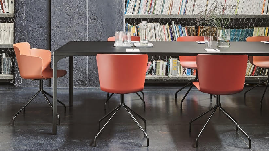 Rigorosamente Made in Italy, Calla coniuga semplicità e comfort, attraverso linee morbide studiate per accompagnare la silhouette del corpo. La scocca in polipropilene, realizzata con stampo ad iniezione, già disponibile con base a quattro gambe in acciaio o in legno, incontra ora nuove combinazioni: base a trespolo fisso, base su ruote, girevole e regolabile in altezza, e base a slitta, impilabile, così da essere facilmente riponibile in spazi ridotti.