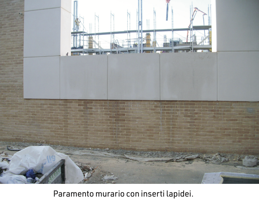 La corretta realizzazione di questa tipologia di muratura necessita di un efficace ancoraggio dei laterizi alla struttura portante degli edifici attraverso un graffaggio (collegamento puntuale) alla parete interna portante. Nel caso dell’edificio polifunzionale, essendo pluripiano con altezze che superano i 10 m, si è reso necessario creare dei giunti di dilatazione verticali.