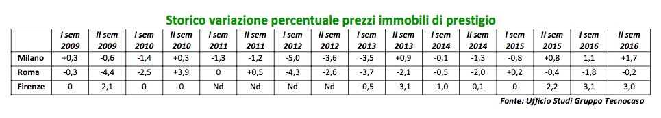 I valori degli immobili di prestigio sono sostanzialmente stabili o in leggera crescita. A dirlo è l’Ufficio Studi Gruppo Tecnocasa i cui dati confermano che il segmento difficilmente conosce crisi in quanto il target di acquirenti ha una buona disponibilità di spesa.