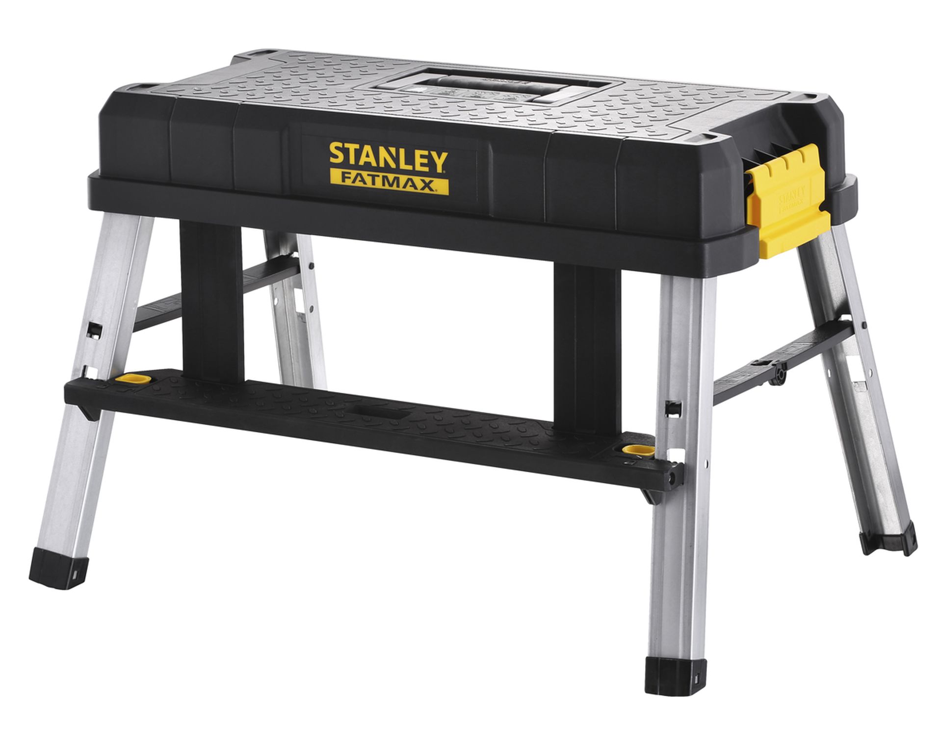 Stanley ha messo in offerta sul proprio Depliant Stanley Pro@motion la cassetta porta utensili 26” Fatmax con sgabello di Stanley, che può diventare, cassetta portautensili, sgabello e supporto elevato per la cassetta.