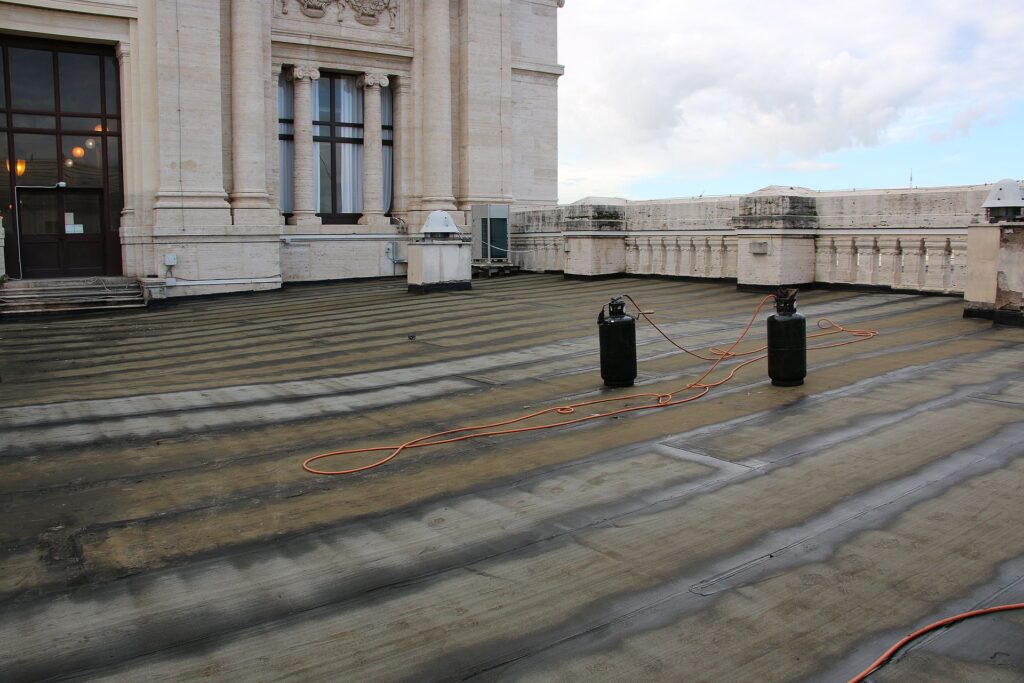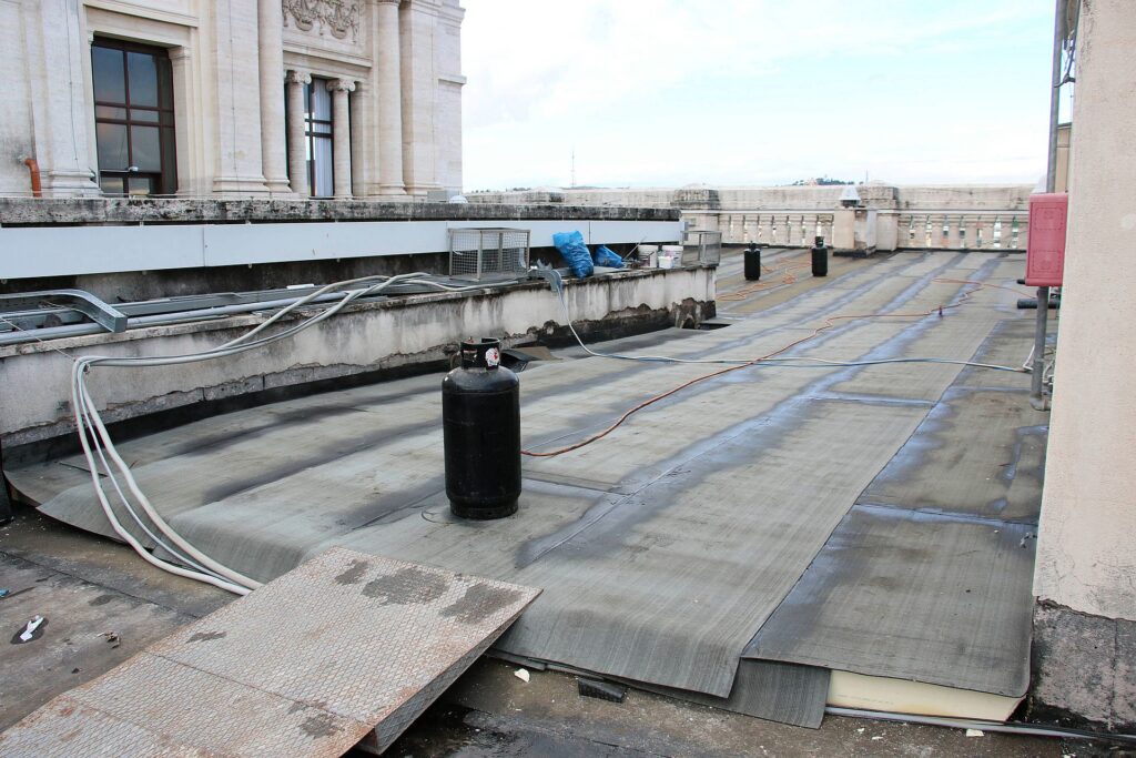 Il nodo più critico dell’intero cantiere è stato il rifacimento delle coperture piane, che costituivano una delle principali fonti di dispersione termica del complesso.