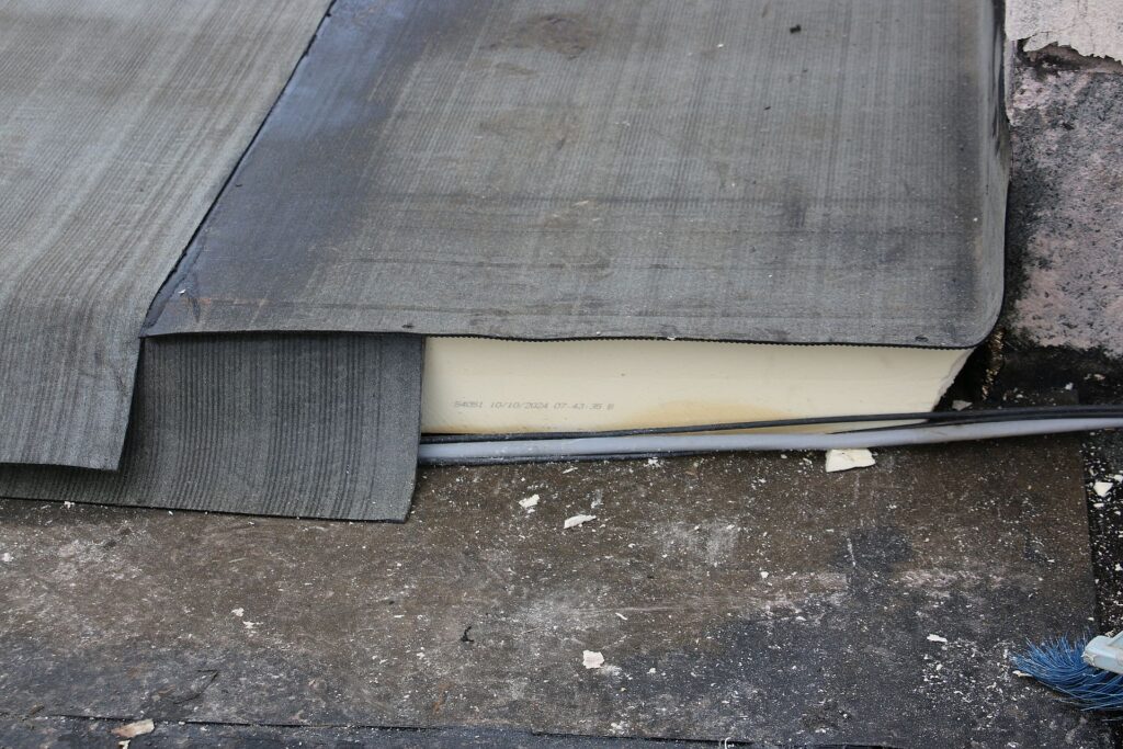 La soluzione adottata prevede il fissaggio a caldo della membrana bituminosa direttamente sui pannelli Stiferite Class B, specificamente formulati per l’utilizzo sotto manti impermeabili bituminosi.