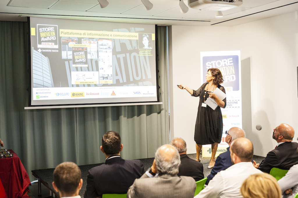 Dopo aver presentato la piattaforma editoriale de Il Commercio edile (che comprende la rivista cartacea, la sfogliabile online, il sito, la newsletter, i social, i corsi e gli eventi) che, dedicata al terget delle distribuzione, fa parte dell’Area Edilizia e Architettura di Tecniche Nuove, Francesca Malerba, ha fatto il punto sul contest partendo dalla sua organizzazione, spiegando come vota la giuria e presentando i numeri di questa terza edizione.