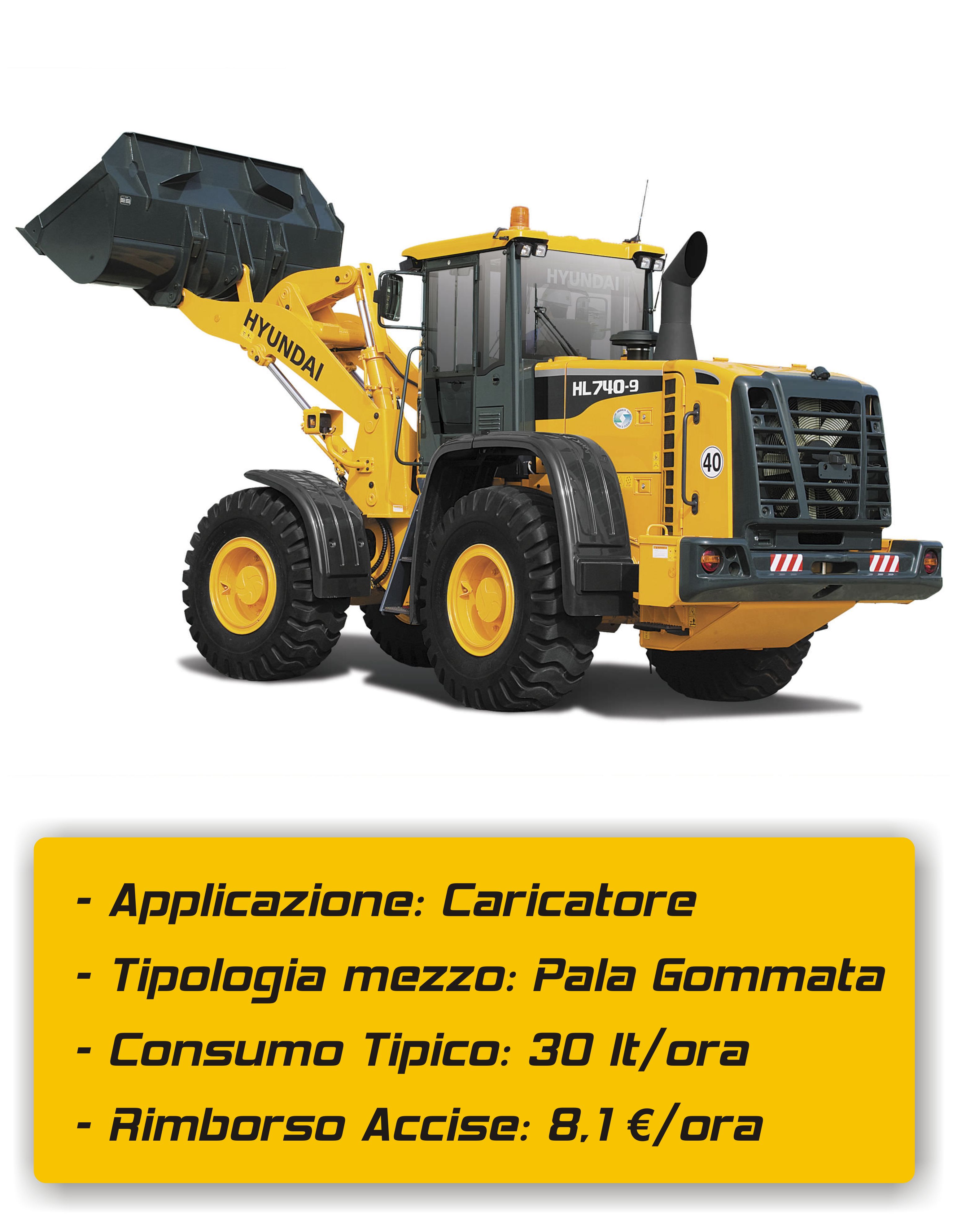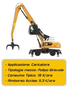 - pala gommata consumo tipico: 30 litri/ora Rimborso Accise: 8,1 €/ora