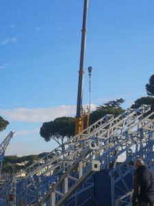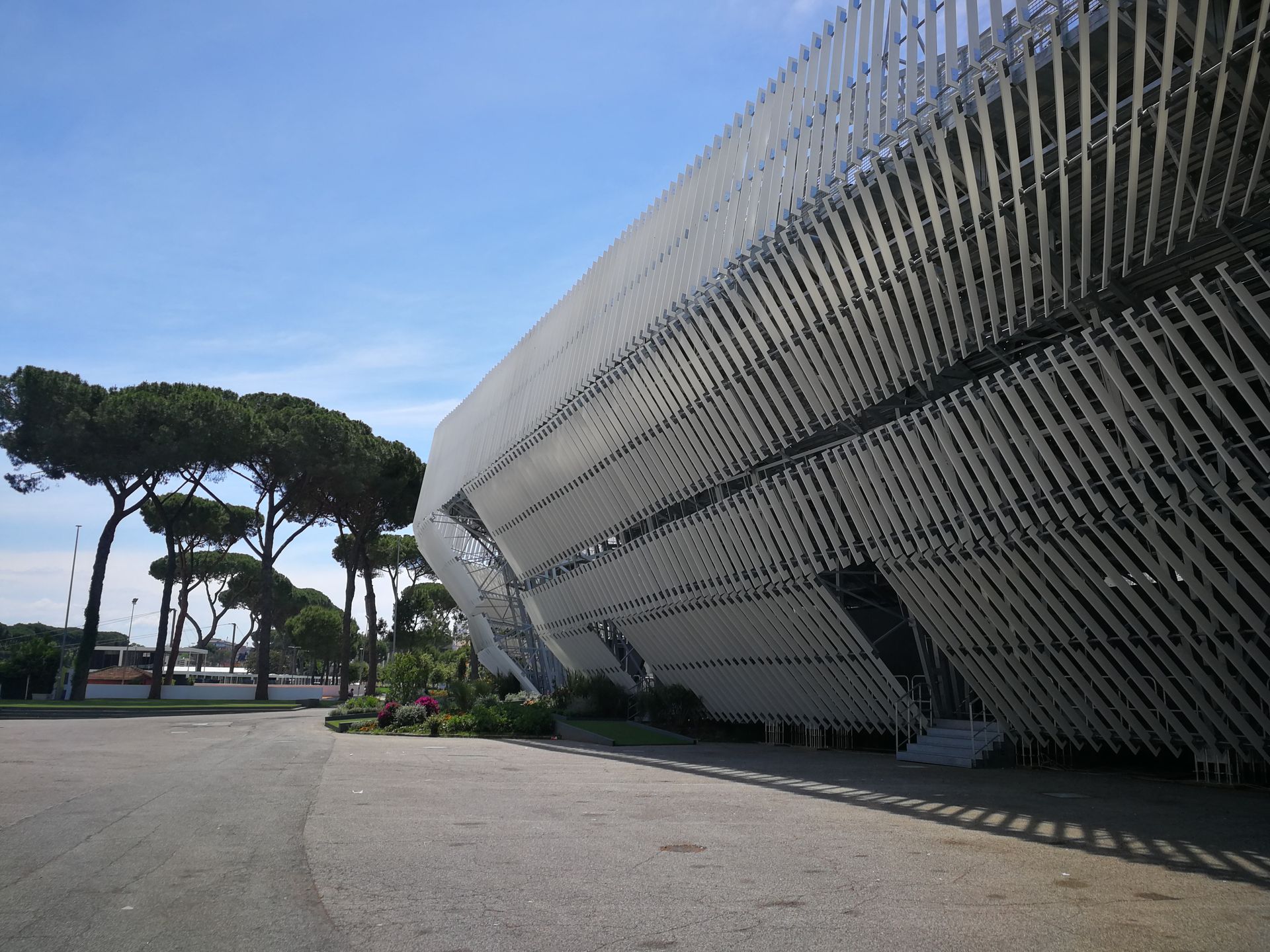 La scelta dell’acciaio si è rivelata vincente permettendo di realizzare una struttura senza fondazioni, configurabile in base agli eventi, smontabile e trasferibile per altri utilizzi. In.tech spa si è aggiudicata la realizzazione dell’opera nel 2017, vincendo una gara che prevedeva, oltre alla realizzazione, anche l’affidamento del servizio di noleggio decennale dello stadio, comprensivo dell’installazione della struttura.