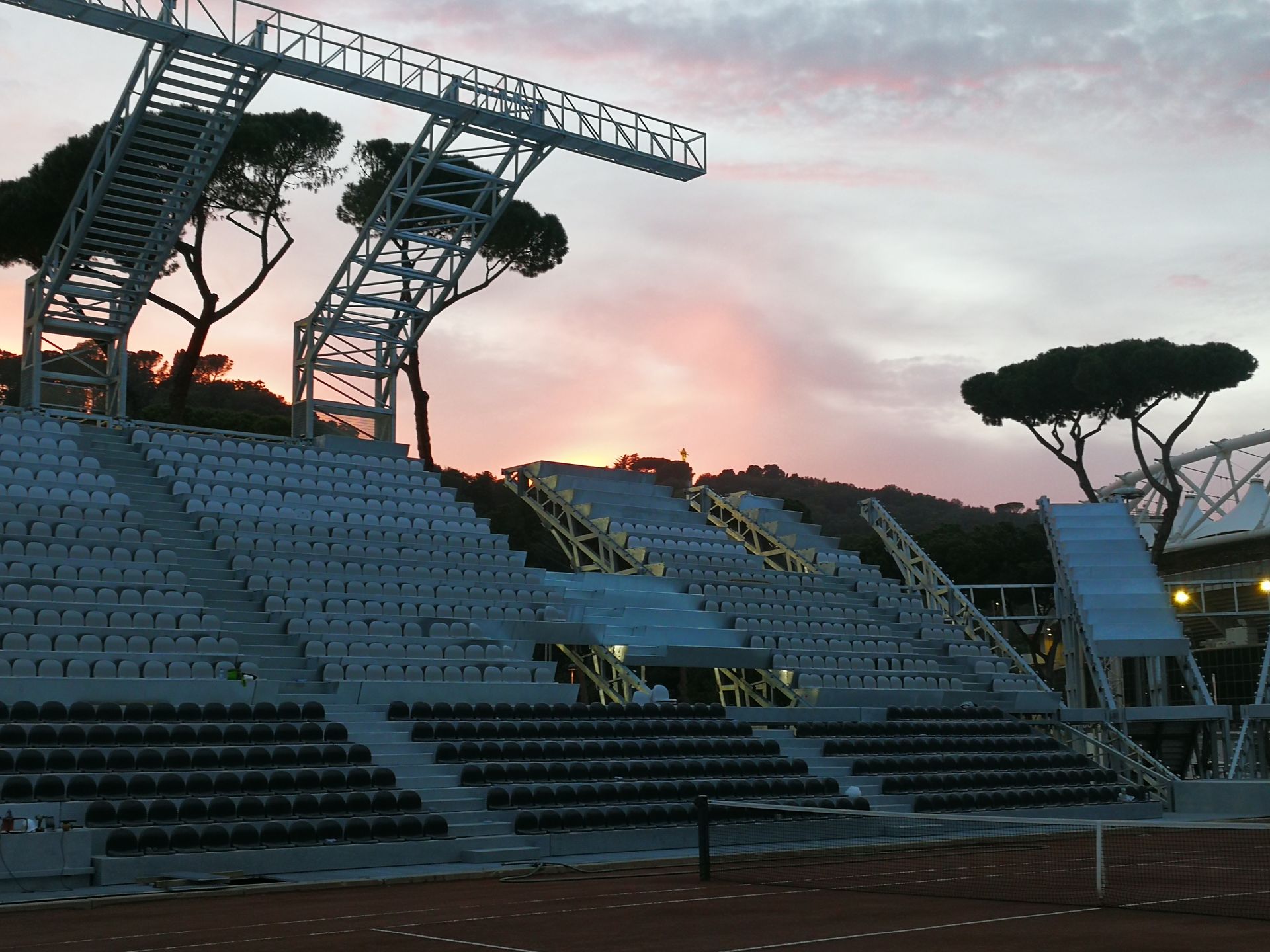 Tfs, acronimo di Temporary Flexible Stadium, è la nuova struttura progettata e realizzata in carpenteria per ospitare i match degli Internazionali Bnl d’Italia di tennis a Roma Foro Italico. In 30 giorni sono state montate 800 tonnellate di acciaio in un cantiere posto nel centro delle attività dello Stadio Olimpico e sottoposto a vincoli paesaggistici.