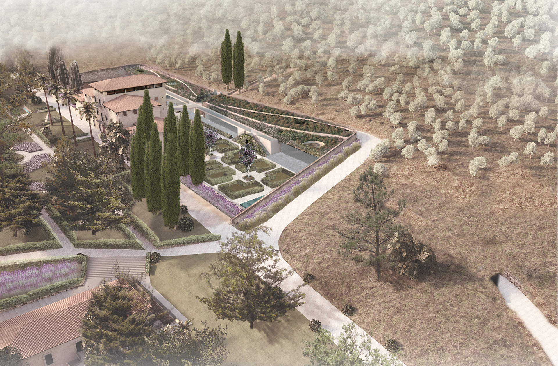 Il progetto Colle Allegro si ispira allo stile “New Tuscan Luxury Life Style” voluto dalla famiglia Gori per porlo in contrasto con il contesto, un’area profondamente caratterizzata da una genesi rurale oggi “trasandata” e decaduta.