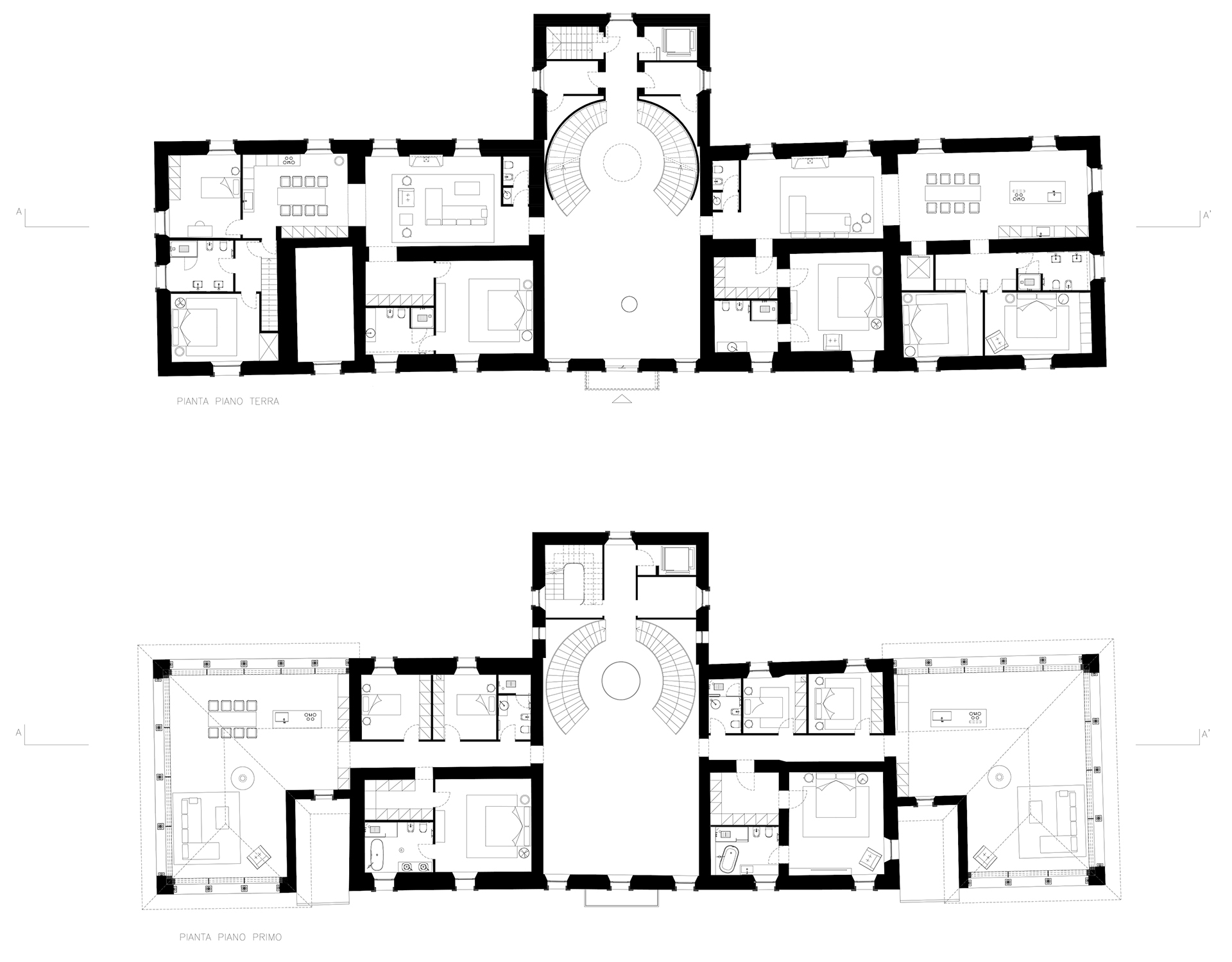 L’intervento prevede, inoltre, il recupero di un passaggio interrato che storicamente serviva da via di fuga, probabilmente in caso di scontri bellici. Da questo passaggio si potrà accedere a una delle residenze, che così godrà di un collegamento privilegiato all’elegante giardino fronte Villa, caratterizzato da enormi piante secolari.