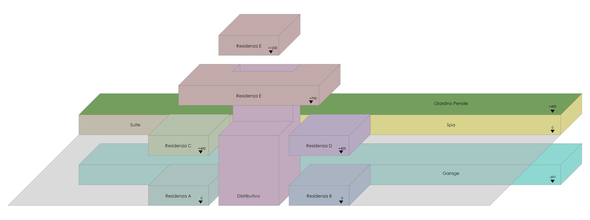 Sono previsti, un giardino pensile a copertura della zona spa, e due giardini d’inverno a utilizzo esclusivo degli appartamenti e degli ospiti delle suites, distribuiti su due differenti livelli, con un microclima che permette la vita a piante esemplari di provenienza esotica, in cui possono trovare la giusta collocazione elementi celebrativi dell’attività commerciale, oltre ad aree dedicate alla meditazione. (vb)