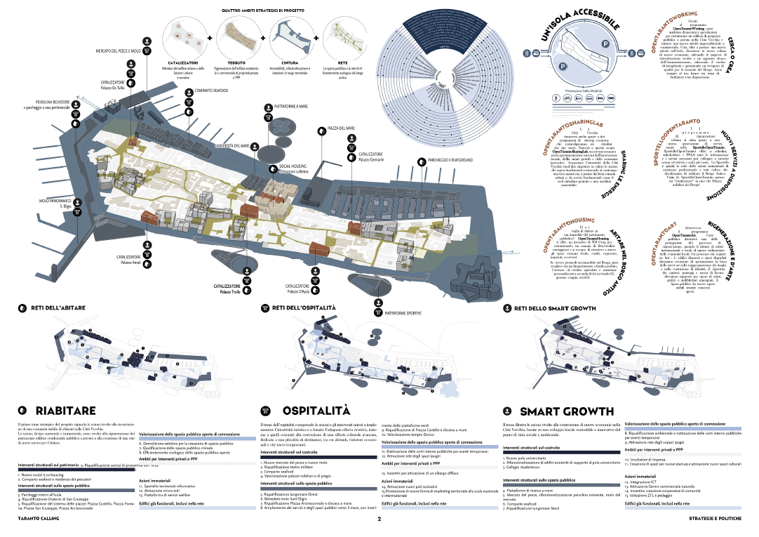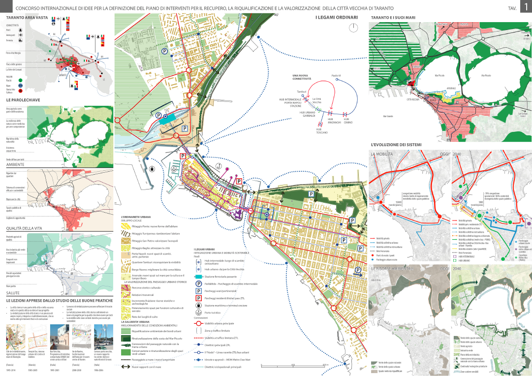 Il concorso è stato funzionale all’identificazione di un piano degli interventi da realizzare: il comune di Taranto può cosi estrarre ampi suggerimenti, modelli generali e progetti specifici dalle tante idee presentate in vista della costruzione del Piano degli interventi per il recupero.
