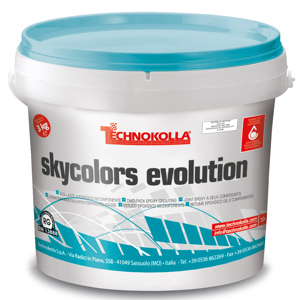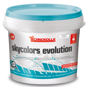 Skycolors Evolution, di Technokolla, azienda appartenente al gruppo Sika, è un sigillante epossidico a due componenti con finiture luminose, e con la possibilità di aggiungere glitter durante la miscelazione.
