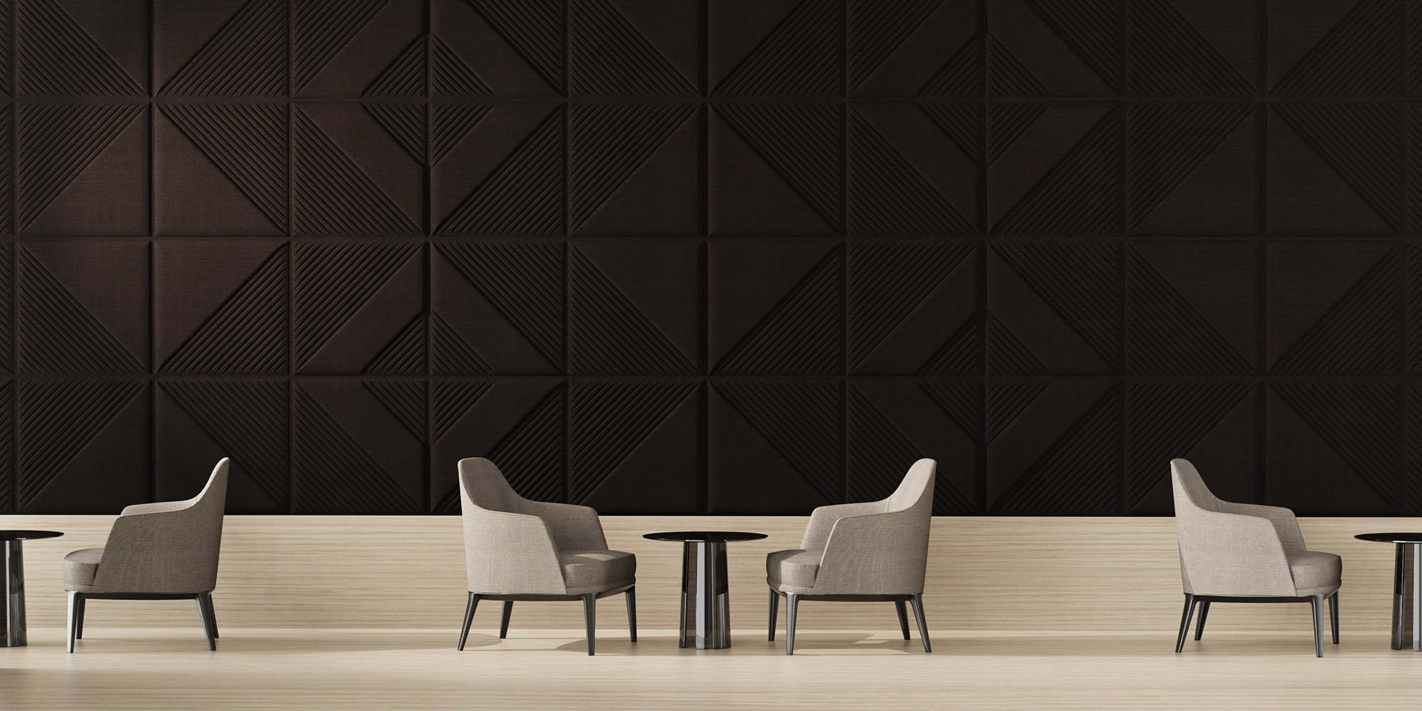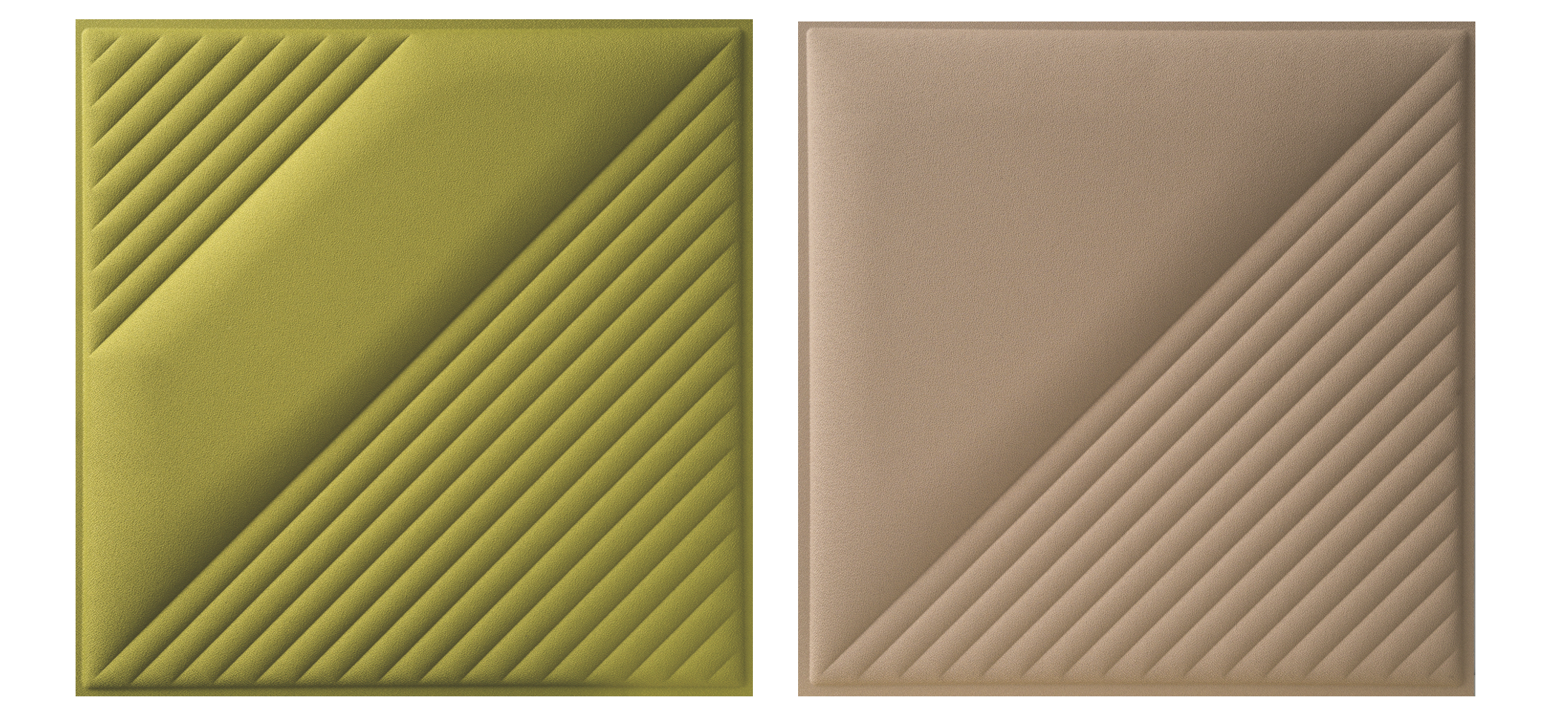 Le piastrelle fonoassorbenti Skin, nella versione Wall, hanno dimensione 60×60, sono disponibili in una palette colori che richiama il mondo della natura e possono essere combinate per creare geometrie sempre diverse.