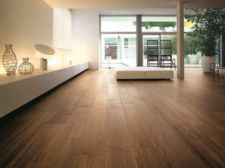 I pavimenti in legno di Mogentale sono lavorati con antiche tecniche come la stagionatura naturale, lungo processo che consiste nello stagionare il legno in modo che perda la linfa in modo graduale e solo in seguito si intervenga artificialmente per togliere l’umidità residua. Nella foto, un pavimento in cabreuva, essenza proveniente dal Sud America. Finiture a richiesta a olio, cera o vernice. Il parquet è idoneo anche al riscaldamento a pavimento.