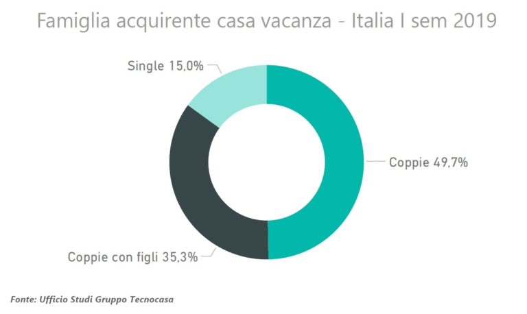 A comprare sono soprattutto coppie (49,7%) e famiglie (35,3%). Percentuali simili si registravano anche nel primo semestre del 2018.