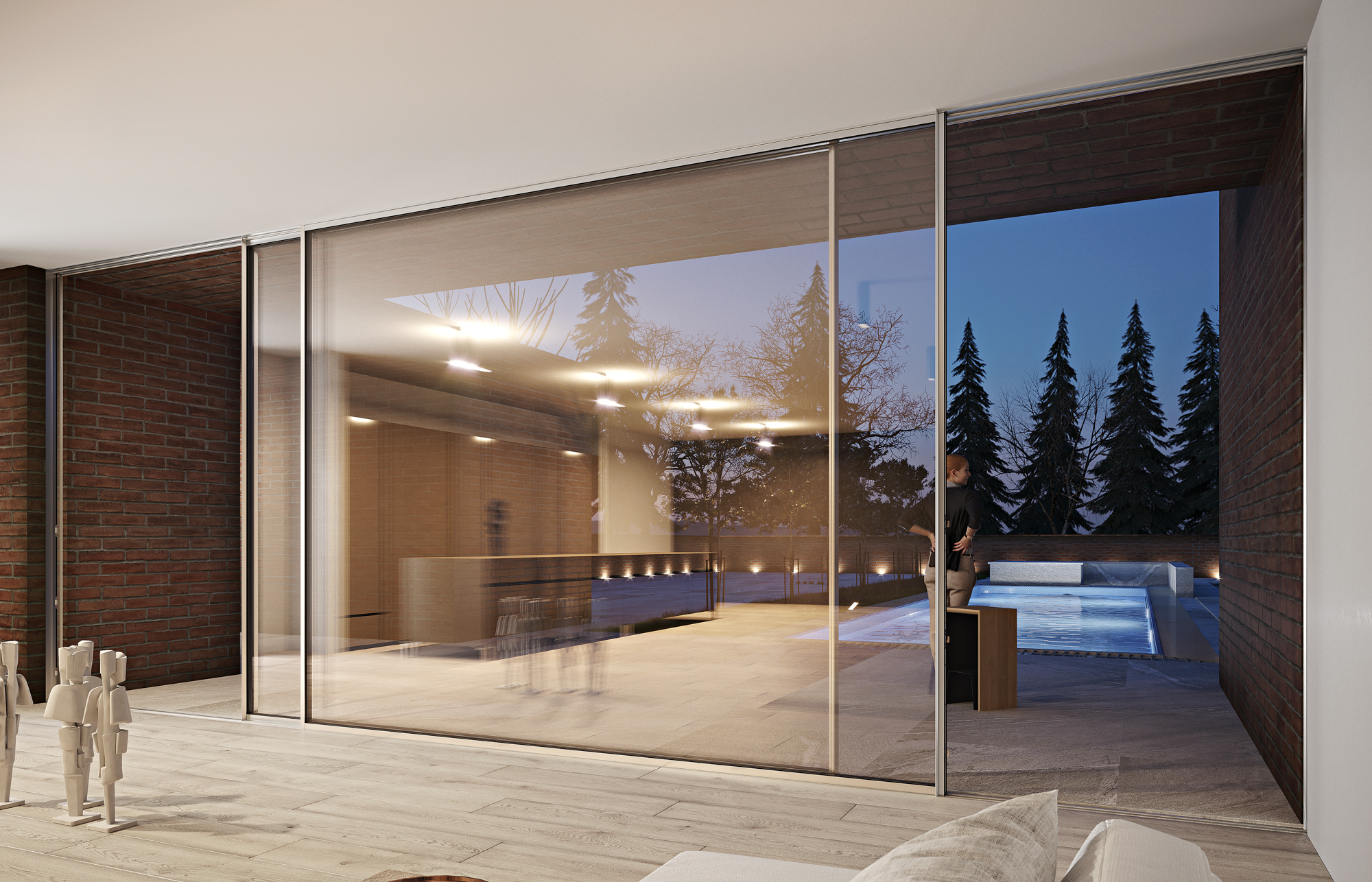 C’è poi il Sistema 1300 SL, uno scorrevole in linea panoramico con un incredibile effetto tutto vetro, grazie al profilo ridotto e ad incasso.