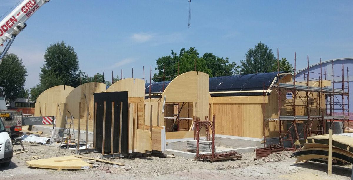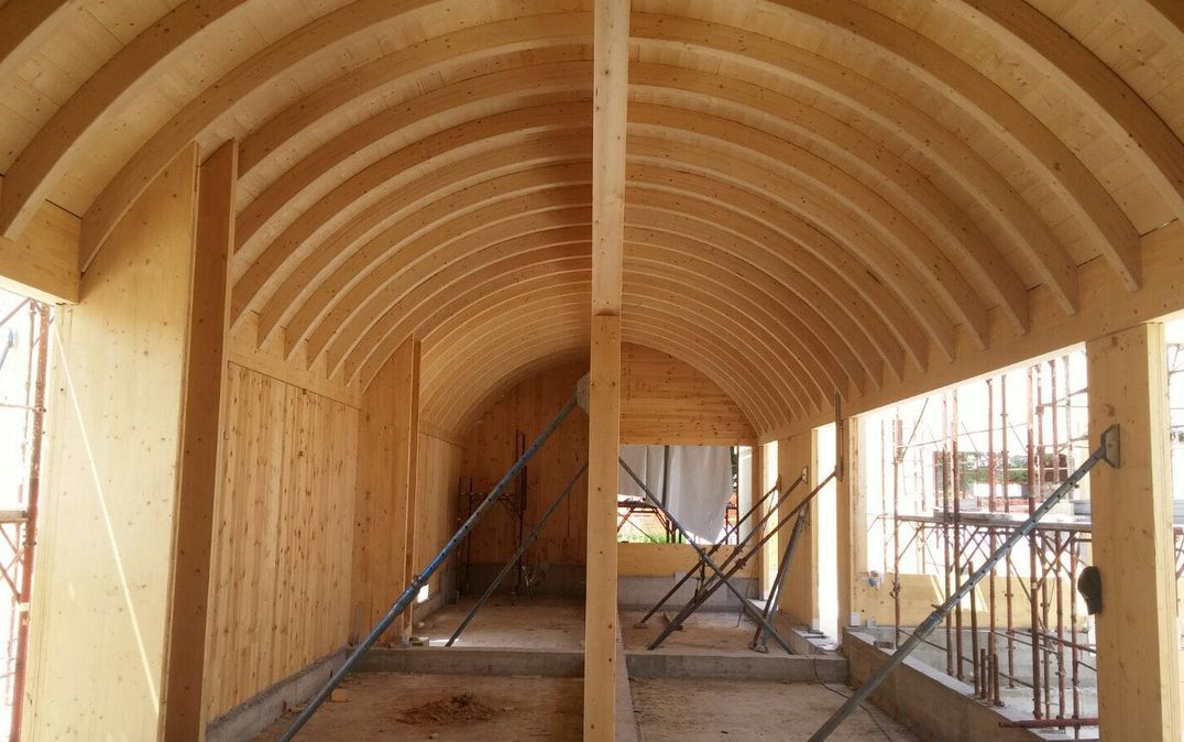 La costruzione è prevista con tecniche off-site che utilizzano un sistema costruttivo stratificato a secco che prevede, per le sue parti strutturali, l’utilizzo di pannelli in legno multistrato a strati incrociati X-Lam.