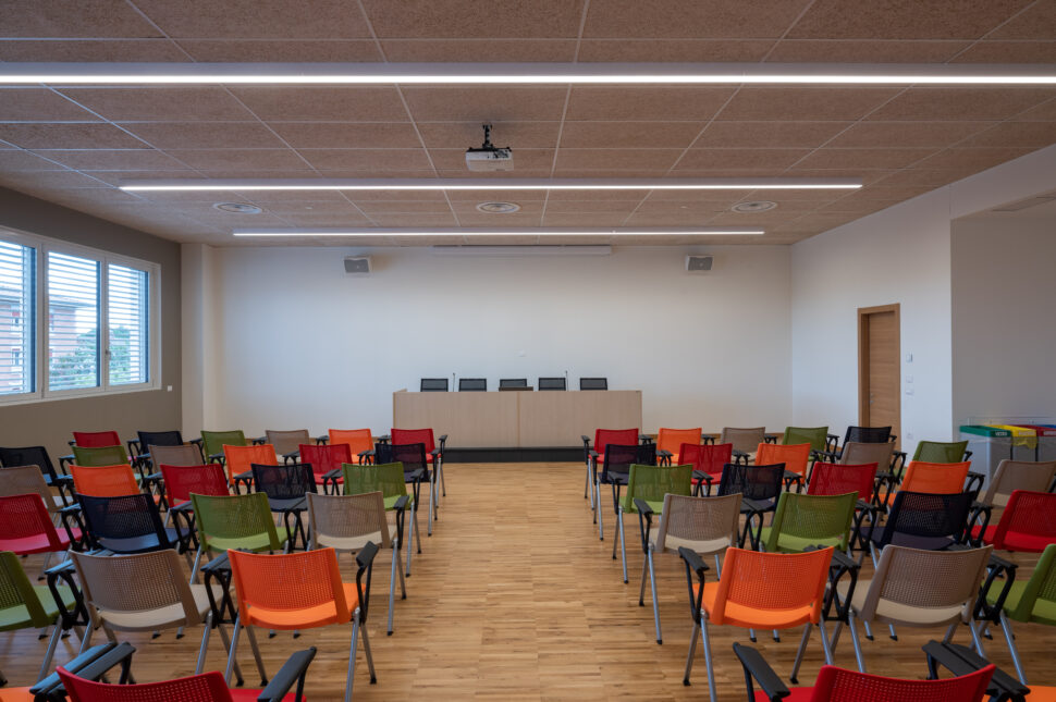 Telmotor ha lavorato all’evacuazione sonora certificata En-54 per la sala polifunzionale interfacciata con il sistema antincendio. Anche il supporto per la zona del bar dell’oratorio ha ottenuto una diffusione del suono gradevole con molteplici sorgenti selezionabili.