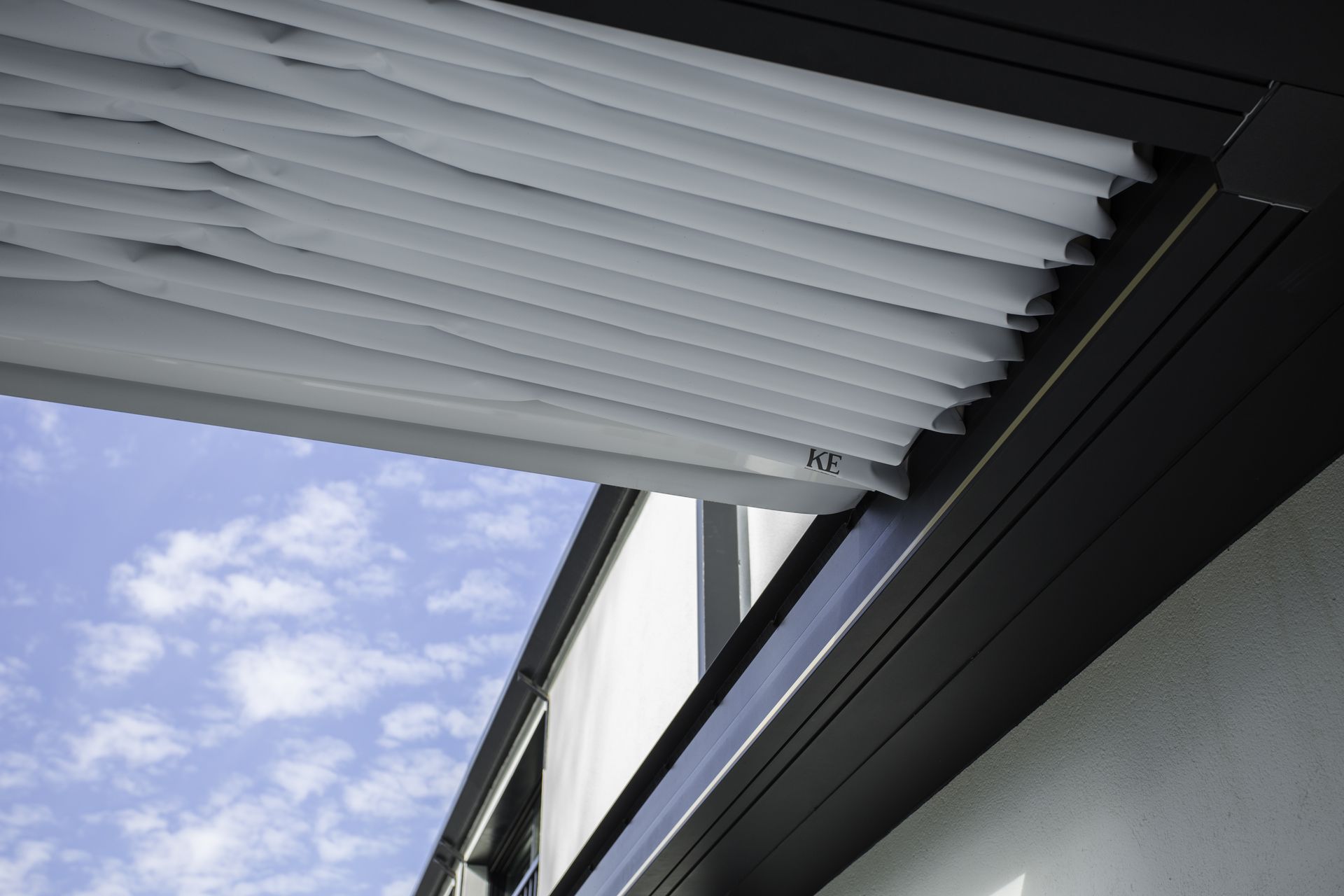 Il rivenditore ha suggerito ai proprietari di casa la tenda a pergola Gennius Isola 3 di KE: i suoi punti di forza sono senza dubbio la modularità e la leggerezza delle linee e dei profili, che la rendono una pergola dal design non invasivo, adattabile a ogni contesto architettonico.