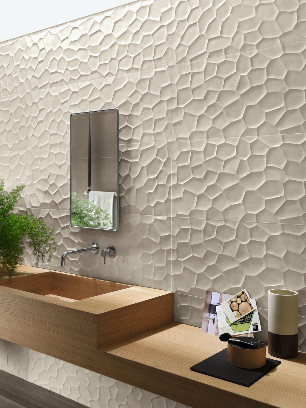 – strutture 3D 40×120 cm rettificate: “Arte” si ispira ad elementi della natura creando effetti visivi di grande impatto quando posata su superfici estese; «Verso» sovrappone elementi lineari creando un movimento simile a quello della «persiana». Entrambe le strutture sono realizzate in tutti i colori;