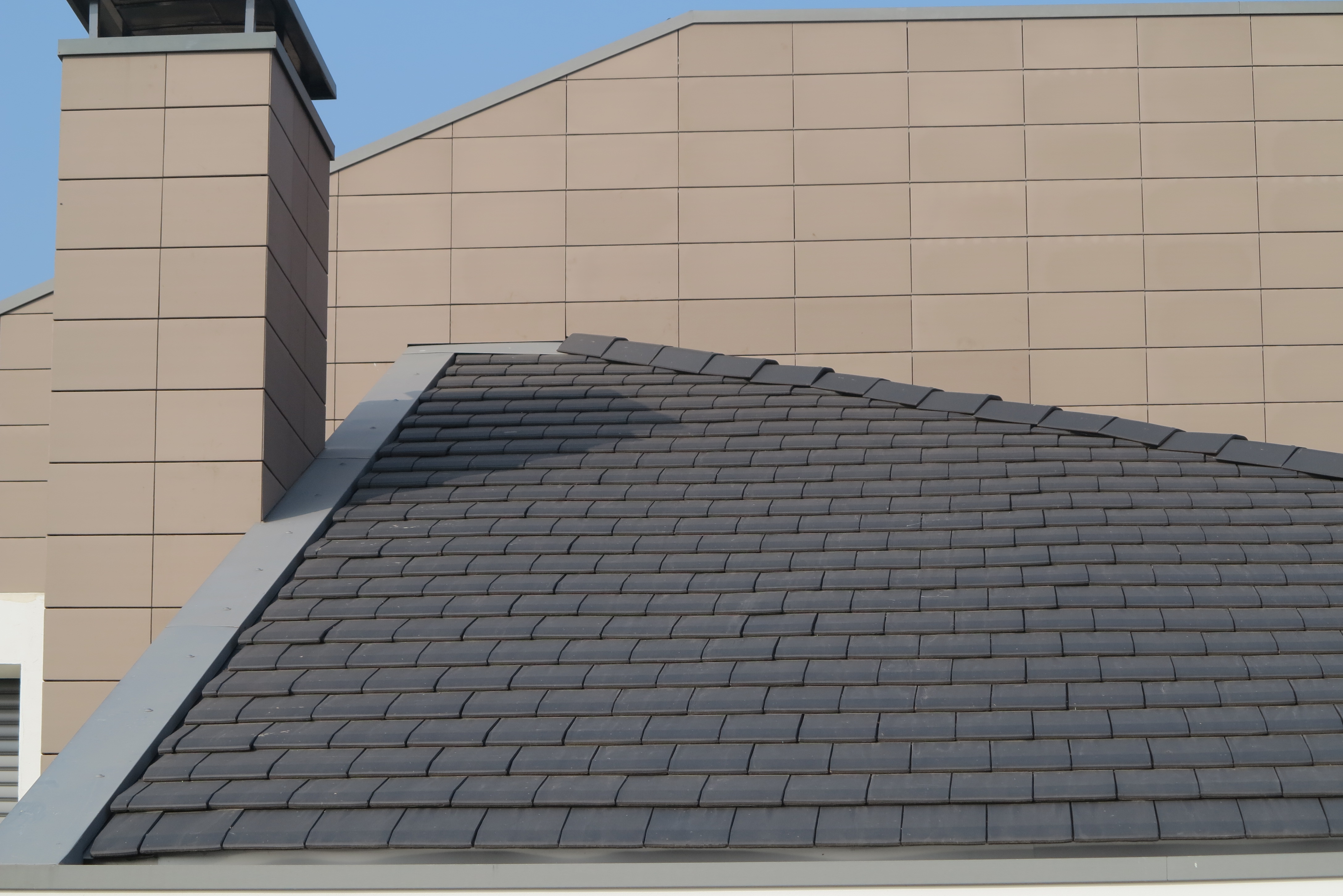 Terreal Italia propone il Sistema Bardage Tuiles, un sistema di rivestimento che permette di posare tegole piane in continuità tra tetto e parete, senza soluzione di continuità dando seguito ad un’idea moderna di involucro architettonico continuo.