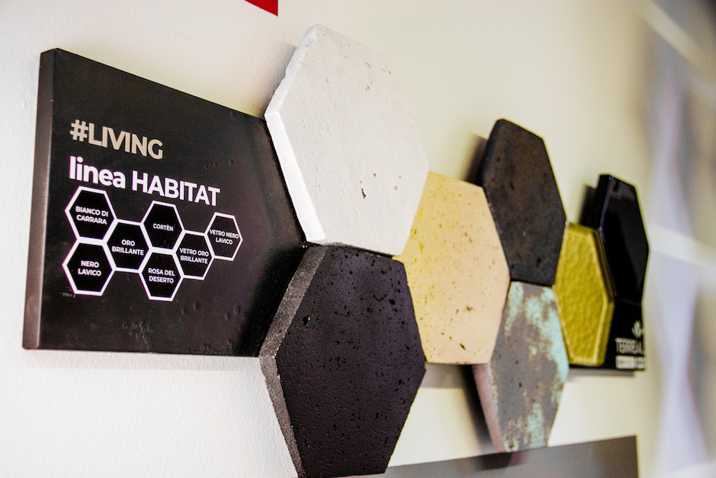«I Listelli Habitat si ricavano dal taglio del mattone, per far emergere la struttura interna della terracotta contraddistinta da micro-medio e macro porosità, cavità e da irregolarità tipiche del laterizio a pasta molle, tuttavia Il concept di questa linea prevede di poter aderire ad ogni altro tipo di formato, anche allontanandosi dalla geometria tipica del “formato mattone” ed approdando a forme libere, esagonali, circolari o mosaici. Posso qui anticipare che nell’ultima parte dell’anno lanceremo una nuova linea di forme esagonali in terracotta colorata, dopo il successo di una installazione allo scorso Fuorisalone di Milano».