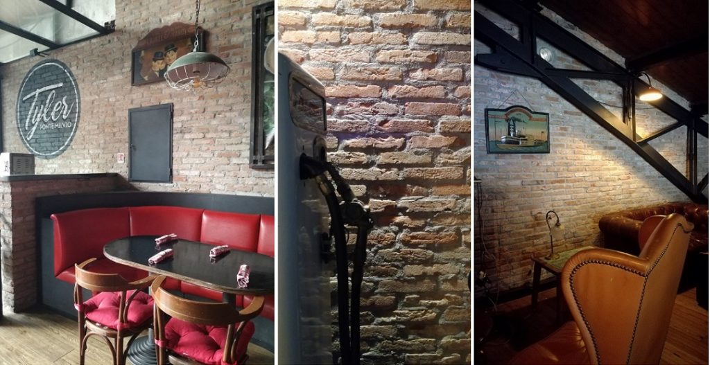 Ne è un esempio il Tyler a Ponte Milvio che, sulle rovine del Crazy Bull Cafè, si propone di raccontare il mondo dei diner americani anni Cinquanta. Un mix di suggestioni vintage, una proposta gastronomica ispirata ai classici del casual dining a stelle e strisce, ma soprattutto l’interpretazione attuale del mito americano. Per farlo si è pensato ai mattoni a pasta molle dove la terracotta si combina perfettamente con gli altri dettagli, come lampade industriali, tavoli in ferro spazzolato, divanetti in pelle rossa.